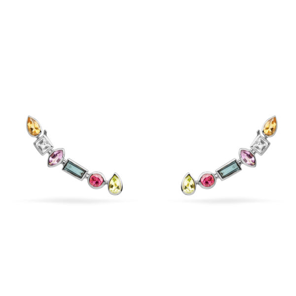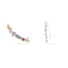Esse brinco veste de forma anatômica, seguindo o formato da orelha. Conta com as seguintes pedras, cada qual conhecida por um tipo de benefício: Citrino – amarelo dourado (autoconfiança e prosperidade), Ametista – roxo (fortalece a intuição e foco), Turmalina rosa (amor próprio e harmonização dos relacionamentos), Peridoto – verde vivo (propósito de vida), Topázio London – azul marinho e Topázio Branco – transparente (detox do organismo e clareza mental).