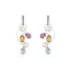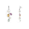Brinco Pérolas Brancas e Pedras Coloridas Prata de Lei