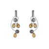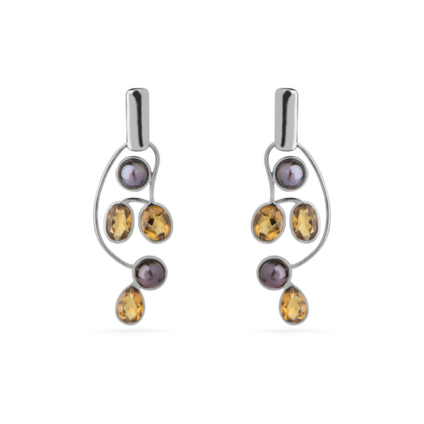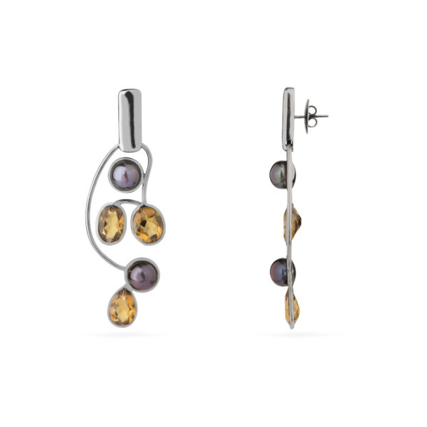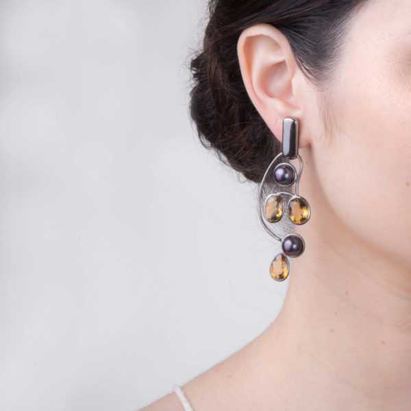 Brinco Pérolas Negras e Quartzo Whisky Prata de Lei