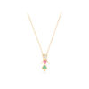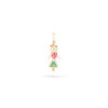 Pedras: Rubelita (coração 4 x 4mm), Esmeralda (triângulo 4x4mm) e Safira branca (redonda 3,5mm)