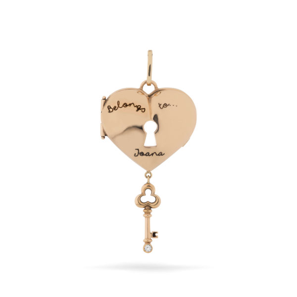 Esse relicário é o que há de mais fofo para representar as suas histórias preciosas. A figura da chave e da fechadura, a gravação “Belongs to…” com o seu nome personalizado e o formato de coração são detalhes do design que vão compondo uma peça cheia de amor. Você pode usar tanto de um lado quanto de outro. O lado transparente é feito de cristal para que você possa exibir uma foto! O coração tem formato abaulado (gordinho) e permite que você guarde pequenas preciosidades, como o dentinho do seu filho, uma mensagem escrita à mão, uma pétala do seu buque de casamento ou outras relíquias da sua vida…
